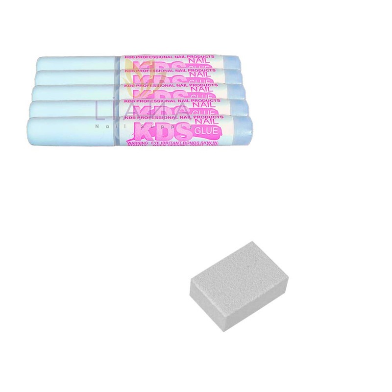 - BUNDLE 5pcs KDS Nail Glue and Disposable Buffer