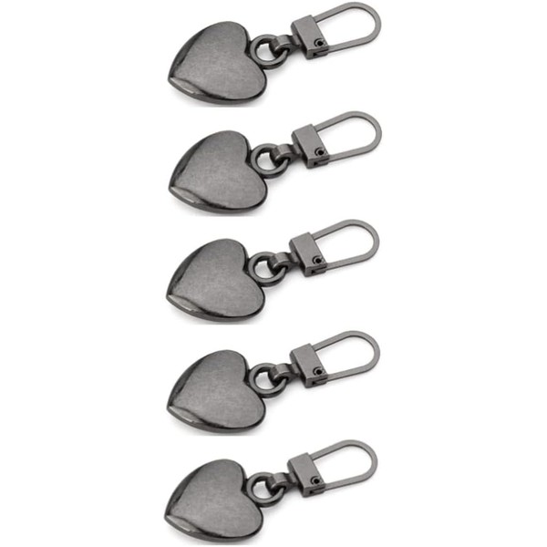 5Pcs Heart Shaped Zipper, Pull Replacement Metal Zipper Backpack Zippers Mend Fixer Repair for Coats Jackets Pants Luggage (Grey)