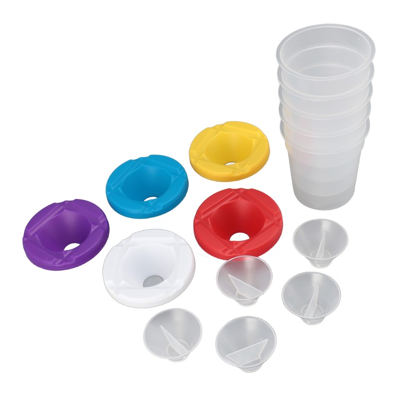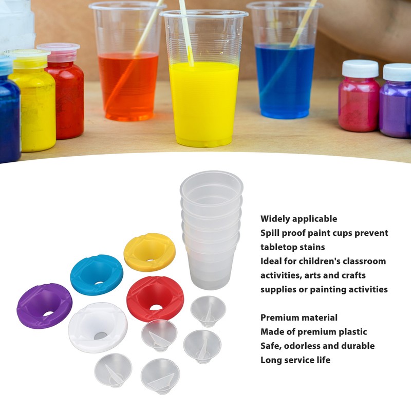 Uses: This 5 pack of easy to clean spill proof paint cups is perfect for creating a neat painting experience. With these spill proof cups, you can play and explore with greater peace of mind; improve color discrimination and eye hand coordination during hands on creativity, and the lids are colorful to help identify the paint in the cups!
