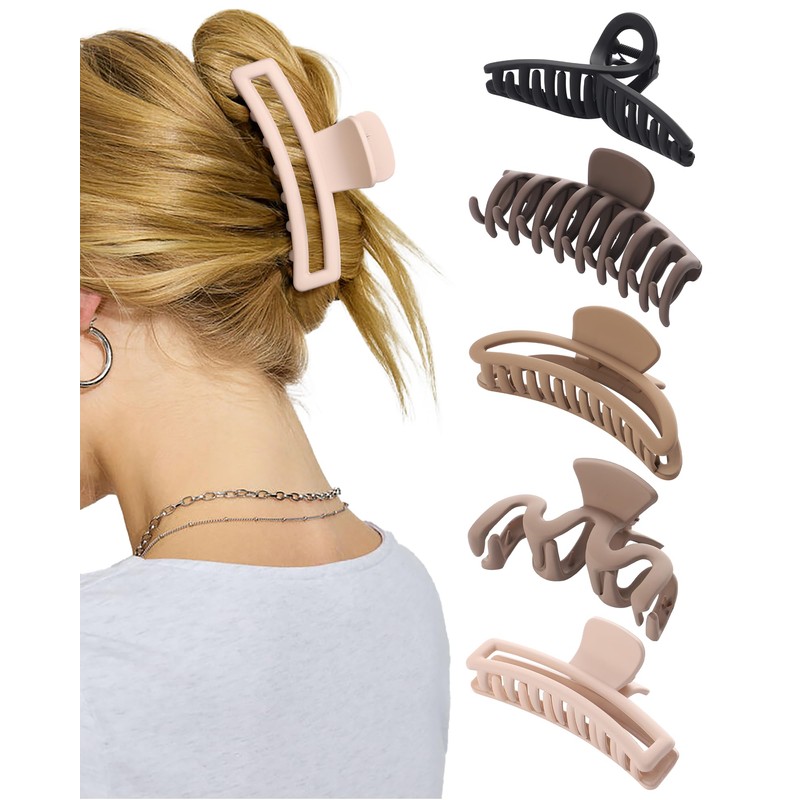 5PCS Large Claw Hair Clips for Thick Hair Big Banana Hair Clips for Women Nonslip Strong Hold Hair Claw Clip (Matte (Earth tone))