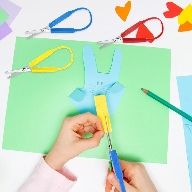 Safety-First Design: These loop scissors feature a self-opening mechanism that ensures safety by automatically reopening after each cut, preventing accidental injury and giving children more control while cutting.