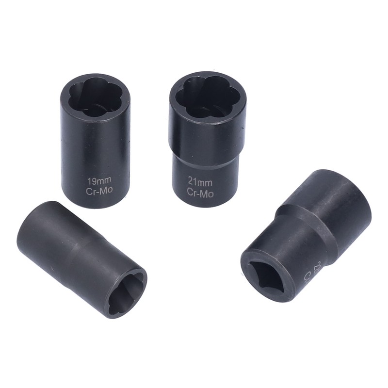 1、This lug nut socket set is made from quality chromium molybdenum steel material, the perfect tool set for nut removal. 2、This lug nut socket set can be applied to quickly remove worn lock nuts, including rust, deformation, peeling or breaking, and car wheel hubs. 3、Plum shaped internal thread design provides excellent torsion for easy and convenient fastening. 4、The unique internal texture makes it easier to hold on to the stubborn nut for easy and efficient removal. 5、This lug nut socket set has black oxidation surface which provides high hardness and high durability.