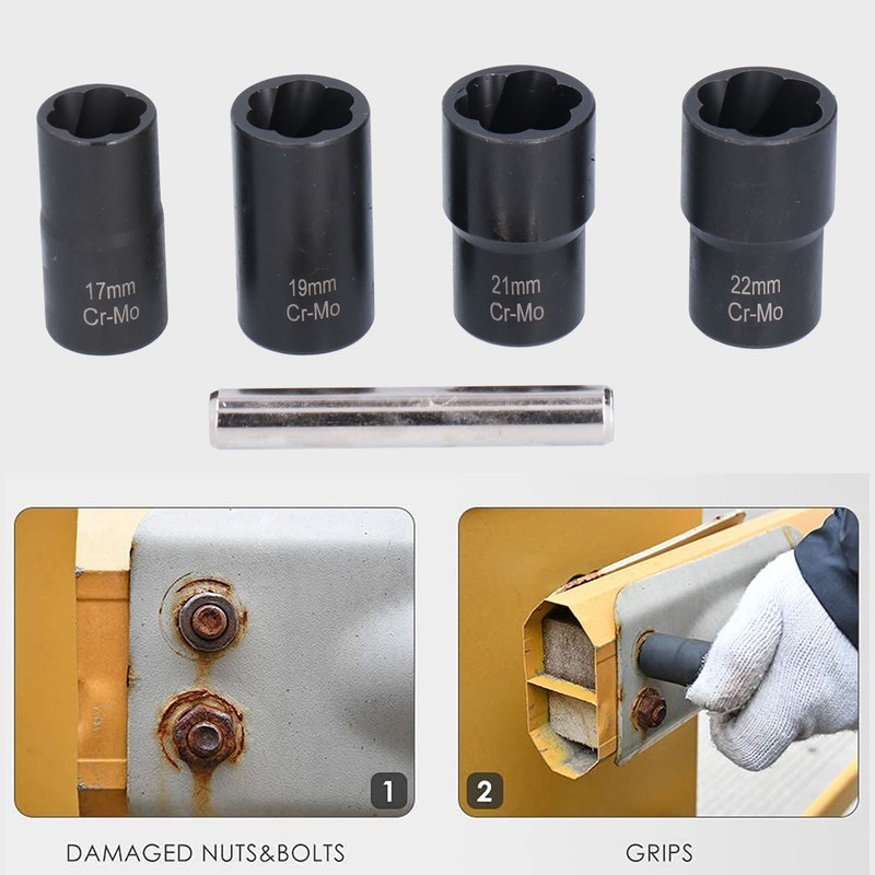 5Pcs Lug Nut Socket Set Convenient Efficient High Hardness Durable Twist Socket Set for Worn Rusty Nuts