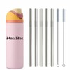 5Pcs Metal Straw Replacement Fit for Owala Water Bottle 24oz/32oz,Reusable Stainless Steel Drinking Straws with 2Pcs Cleaner Brush Compatible with Owala Freesip24OZ/32OZ Bottles