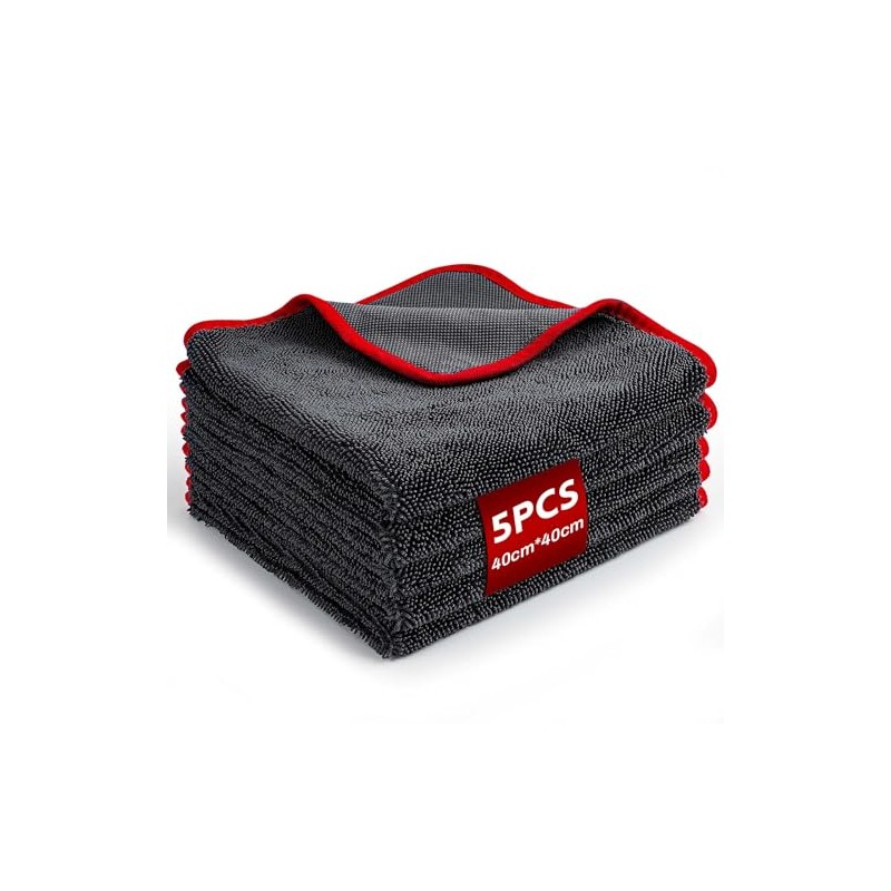 5PCS Microfibre Cloth 40x40cm, Car Drying Towel Made of 500gsm Microfiber, Super Absorbent Microfibre Cloth, Microfibre Towel for Car Detailing, Cleaning and Drying (Dark Gray & Red, 40x40cm-5pcs)