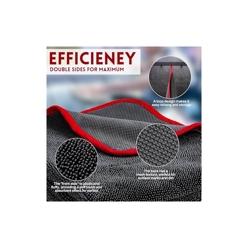 One towel, two functions – the high-pile side excels at trapping dust and moisture, while the low-pile side is perfect for polishing waxes, sealants, and even glass surfaces. This makes it your go-to car polishing cloth and car dryer.