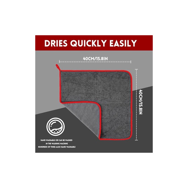 - SUPER ABSORBENT MAGIC WIPE FOR SPEEDY DRYING – Our car drying towel extra large (40x40cm) is made from ultra-absorbent microfibres, soaking up water up to 8x its weight! With just one swipe, it dries your car quickly and efficiently, making it a must-have micro fibre cloths for cars. Say goodbye to water spots with this professional car drying cloth.