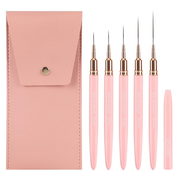 5PCS Nail Art Brushes Set with Pink Leather Case,【Metallic Material】 【Various Size】 【Light Weight】Nail Brush, Nail Brushes for Nail Art,Size:5mm,8mm,12mm,20mm,25mm, Pink