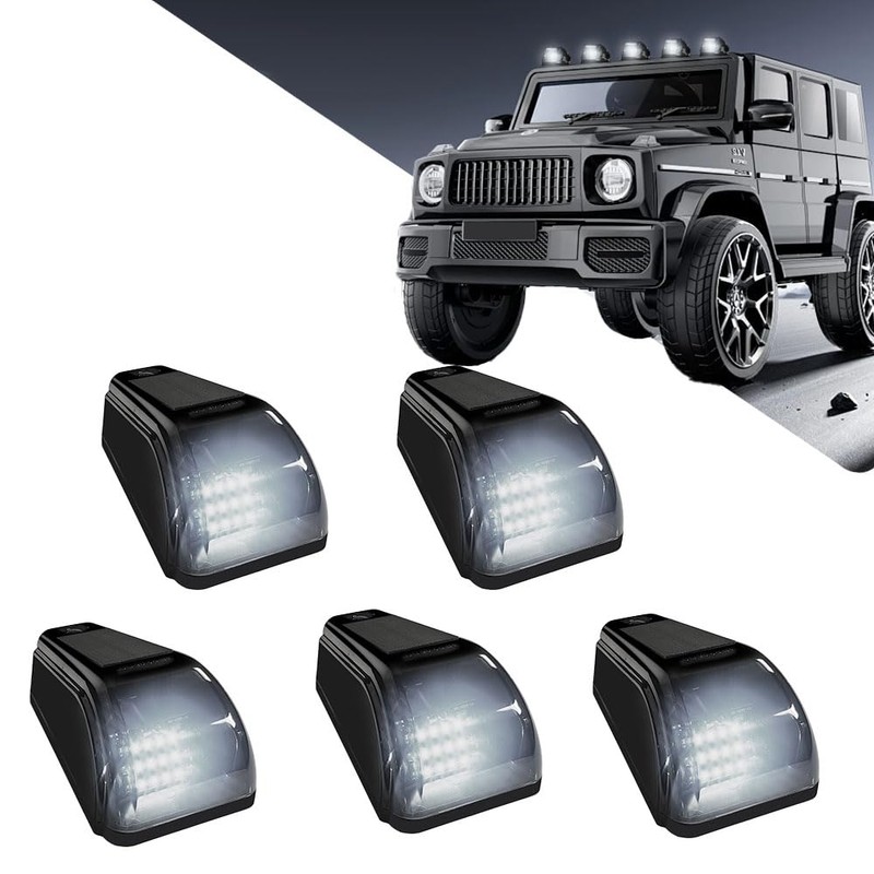 UPXSXT 5Pcs No Drill Car Cab Lights, Solar Powered Waterproof Wireless Rooftop Cab Clearance Light for Truck Cab Led Lights Vibration Sensor Roof Lights for Universal Car (white)