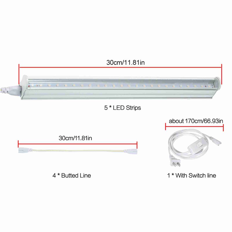 1、Great for small grow box, grow tent, hydroponics, bonsai, garden, etc. 2、Providing plant, vegetable and flower all stages with everything they desire in the sunlight. 3、Easy installation, it is easy for you to finish your setup with the supplied screws. 4、The package including 5 pack led light, 4 butted line, 1 plug with switch, and some parts. 5、Low power consumption but high luminous efficiency, long service life about 50000h.