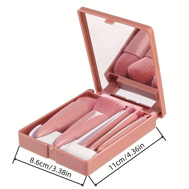 - 5Pcs Portable Makeup Brush Set – Complete with essential brushes for flawless foundation, blush, eyeshadow, and more. Compact and lightweight for easy on-the-go touch-ups.