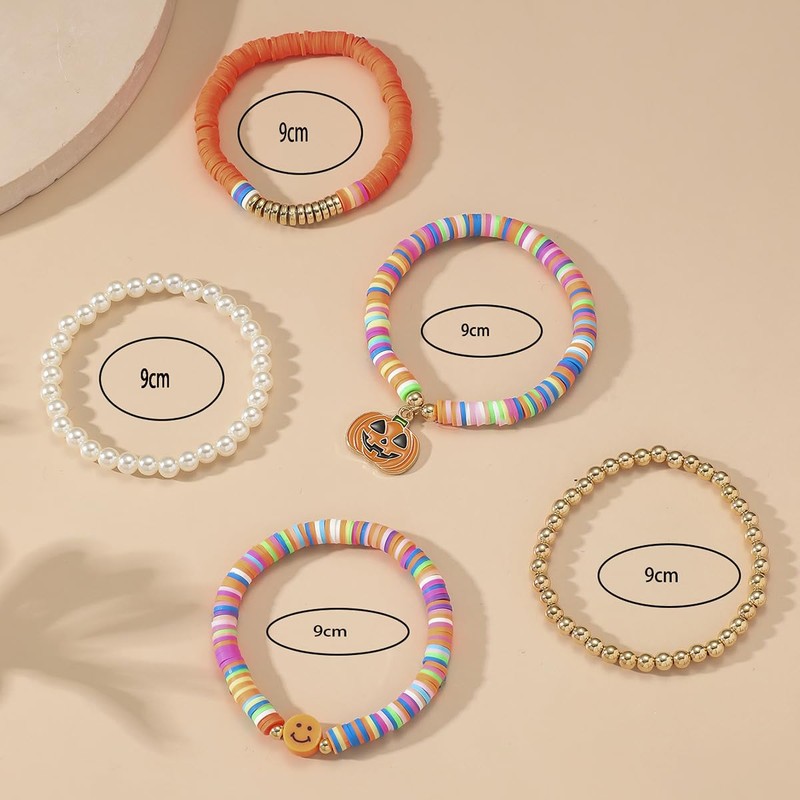 5Pcs Pumpkin Bracelets for Women Stackable Rainbow Clay Beaded Stretch Bracelets Elastic Layering Friendship Bracelets Boho Summer Beach Jewelry