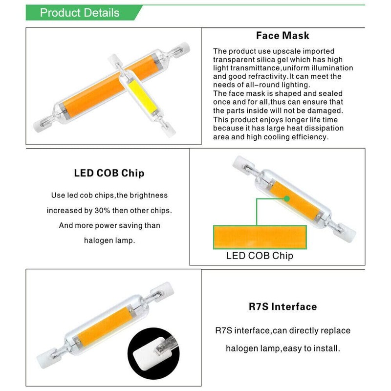 - Color Temperature:4000K~4500K,118mm-10W,Input voltage: AC 110V,Base Type: R7S