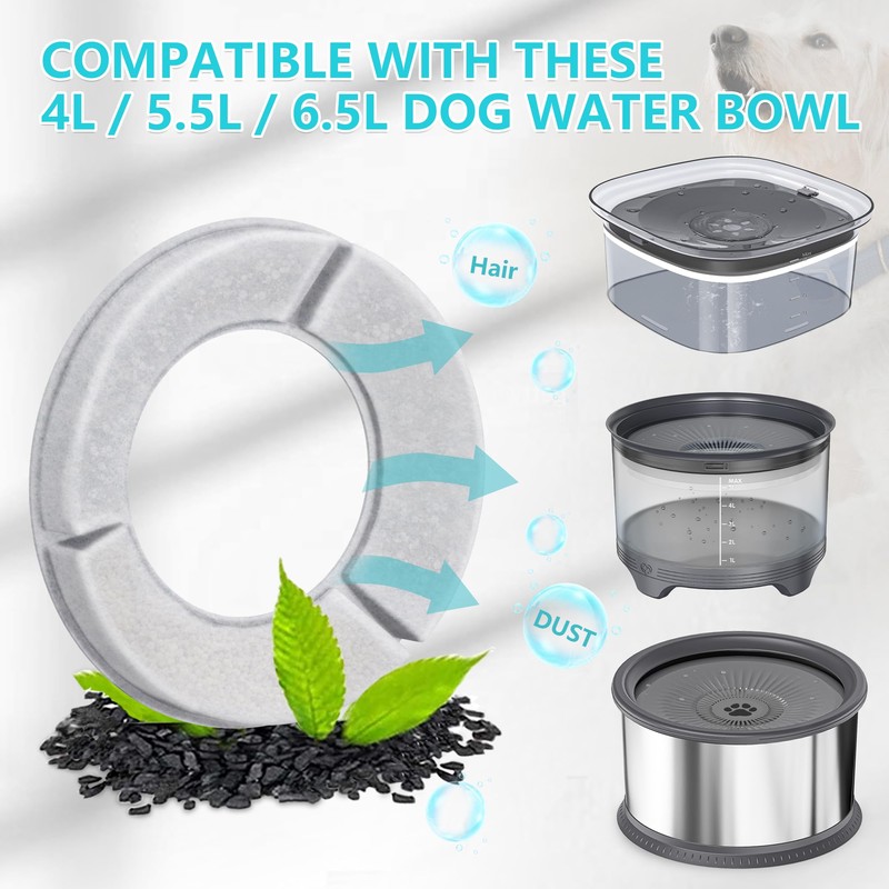 - Compatibility: This filter is only compatible with 3L Dog Water Bowl with Slow Feeder Mat, 4L Large Capacity No Spill Dog Bowl, 5.5L No Spill Dog Water Bowl, and 2.5L, 3.5L, 4.5L Stainless Steel Dog Water Bowl and 6.5L Super Large Capacity Stainless Steel Dog Water Bowl