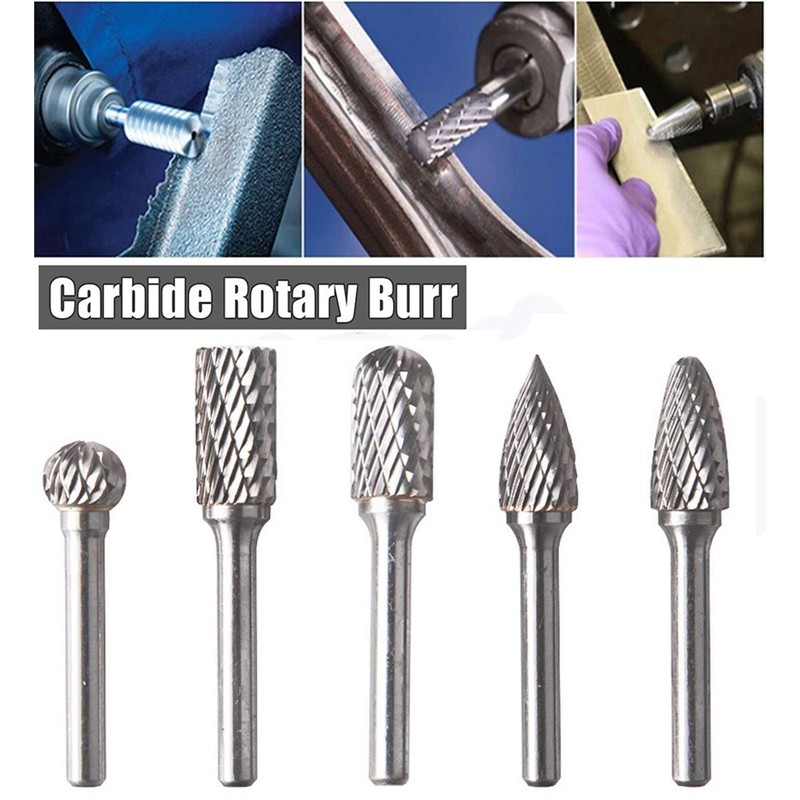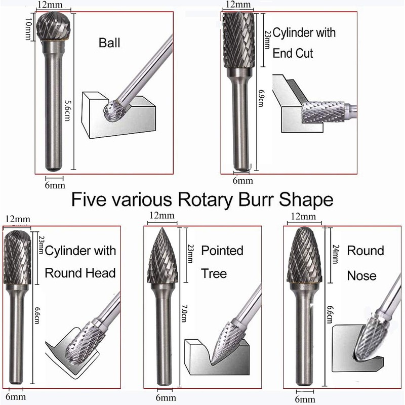 5pcs Rotary Point Burr Set Die Grinder Bit with 10 mm Shank and 6 mm, Carving Tool Tungsten Carbide Steel