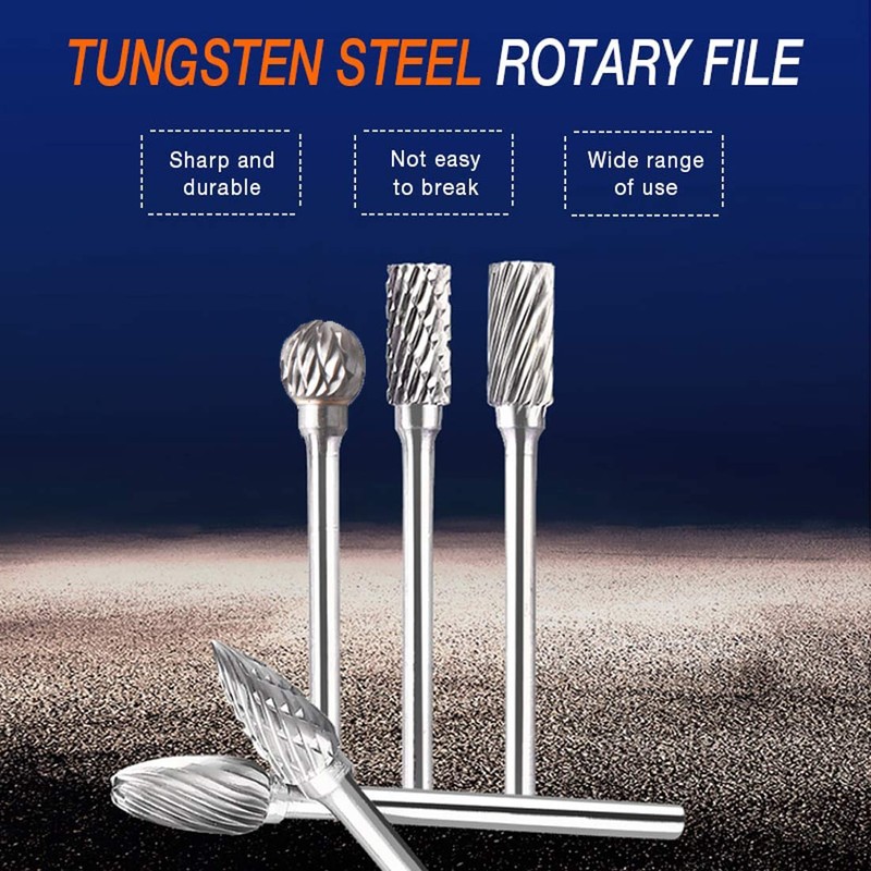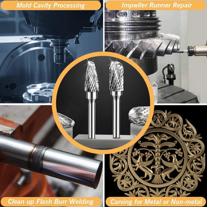 • 【Double Cut Design】 The double cut tungsten carbide burr bit set has a double cut design, with flute lines that are crossed. The surface is smoother after engraving or grinding cutting.