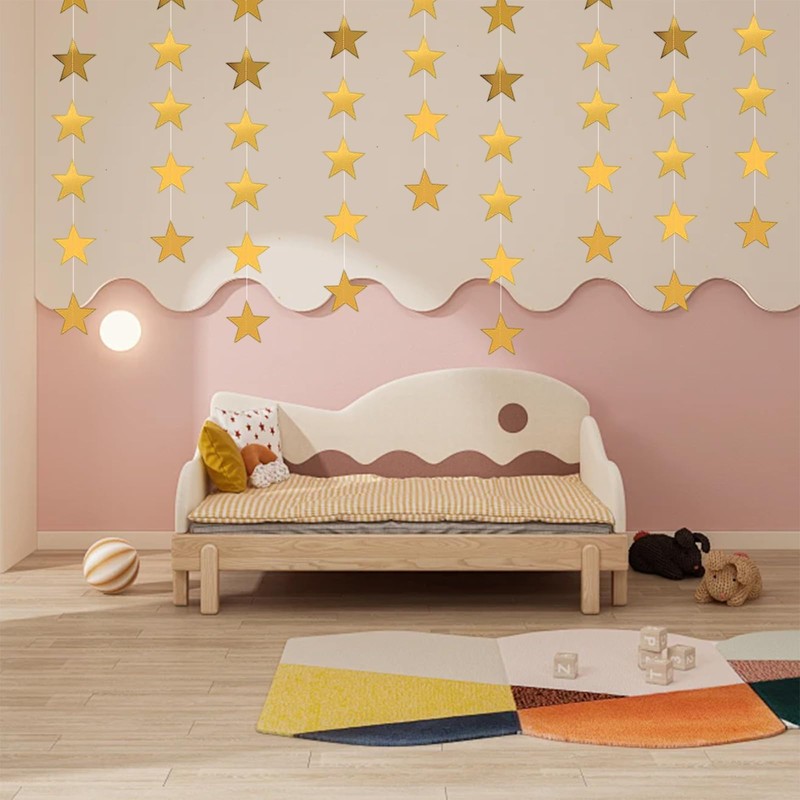 - 【Easy to Assemble】Untie the whole rope and hang it carefully to avoid twisting. Unroll the star garland in order just before use, adjust the distance of star according to your needs, and hang it on the wall or other place.
