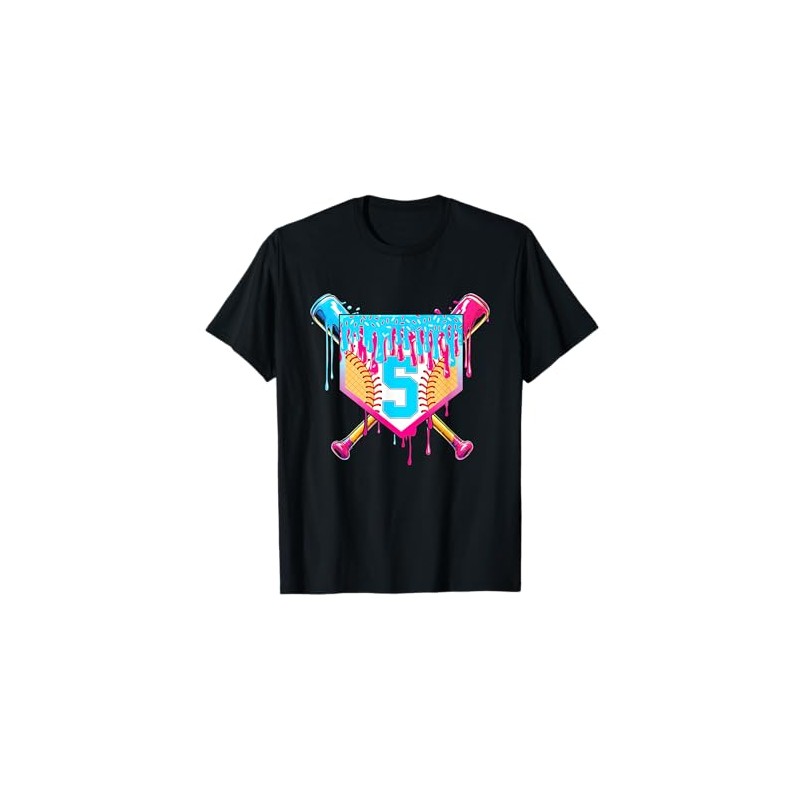 5th Birthday Softball Ice Cream Drip 5 Years Boy Girl Gift T-Shirt