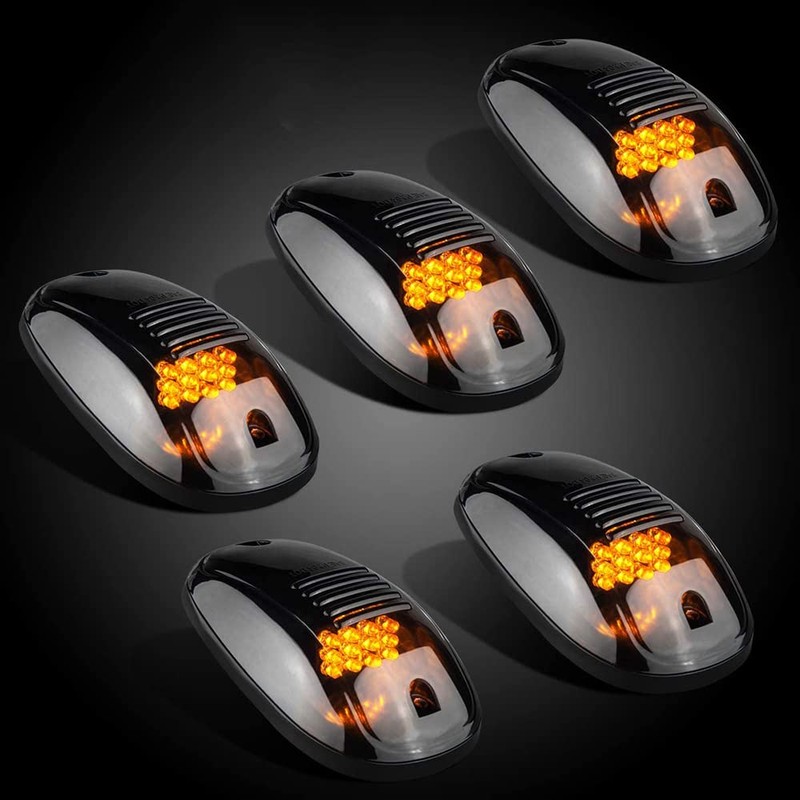 5X Amber LED Cab Lights Smoked Cab Roof Running Top Marker Light Compatible for Dodge Ram 1500 2500 3500 4500 5500 2003-2018 Pickup Trucks