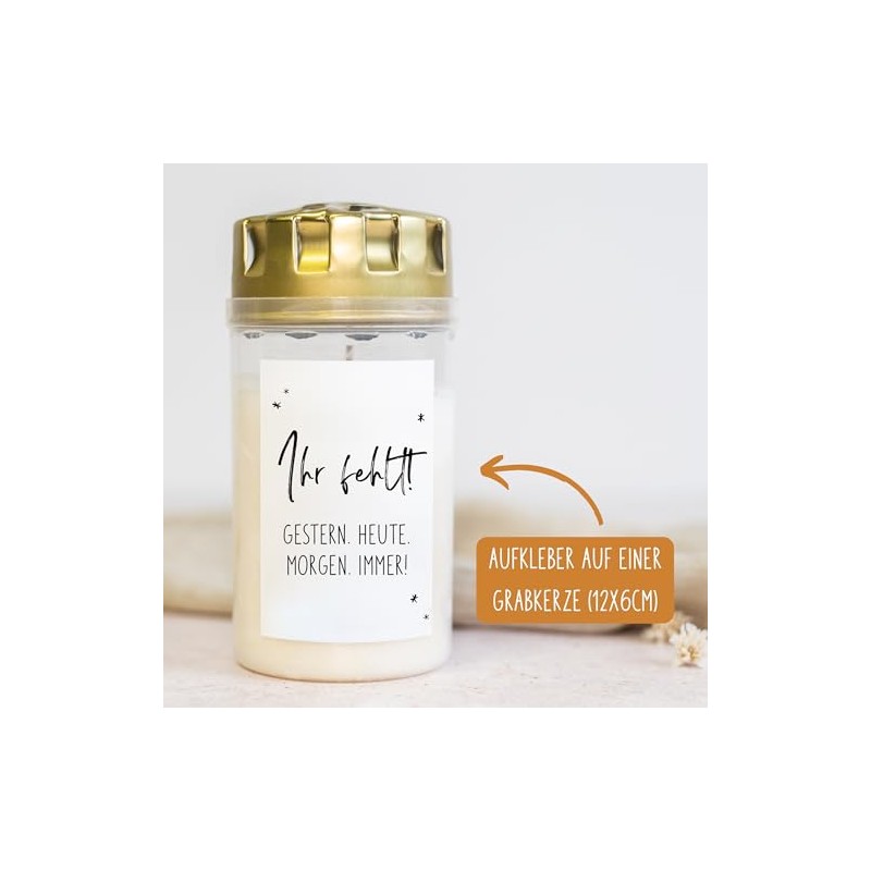 - ‚≠êÔ∏è ùó†ùóºùòÅùó∂ùòÉ ùóîùòÇùó≥ùó∏ùóπùó≤ùóØùó≤ùóø: 5x Mix - moderne Aufkleber f√ºr Grabkerzen mit "Ihr fehlt! Gestern. Heute. Morgen. Immer!" - Die Designs f√ºr deine Grabkerzen werden von mir pers√∂nlich mit viel Liebe gestaltet. Ich m√∂chte dir Motive f√ºr deine Liebsten mit auf dem Weg geben, die pers√∂nlich und voller Liebe sind.