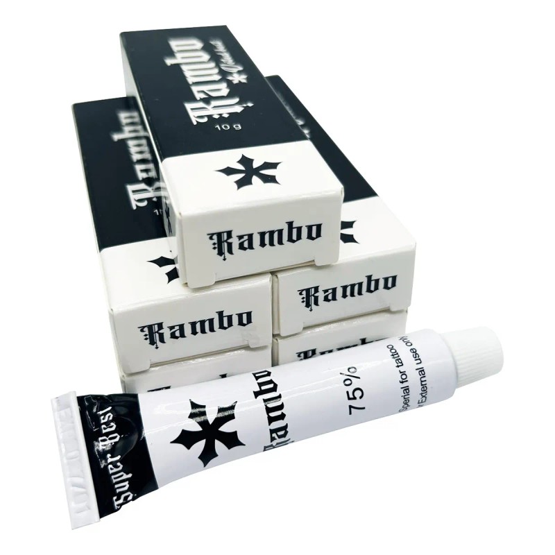Cada tubo de 10G de Rambo 75% Crema Previa es tu boleto a la tranquilidad cutánea. 🎟️ Prepárate para sumergirte en el mundo del microblading sin sobresaltos, o atrévete a ese nuevo tatuaje que tanto deseas, sin la sombra del dolor acechando. Su fórmula avanzada, aplicada generosamente sobre la piel y dejada actuar durante 45-60 minutos, crea una barrera protectora que minimiza las molestias hasta por 1-2 horas. ⏳