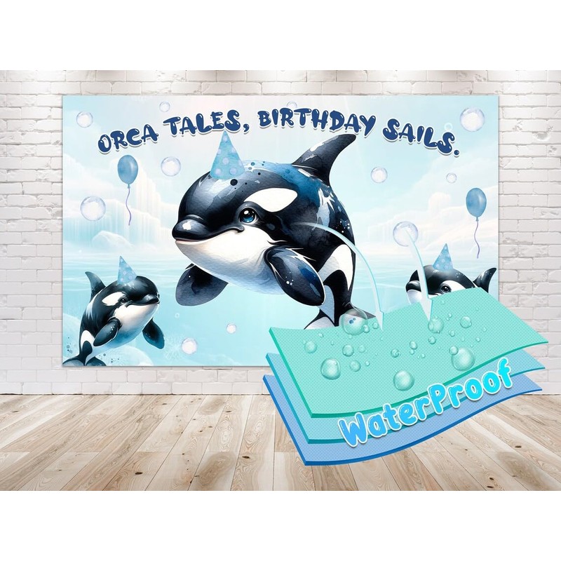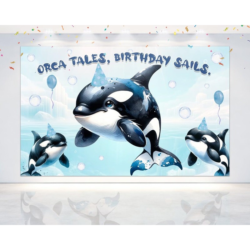 - Whimsical Orca Design: Celebratory orcas with party hats bring a splash of fun to birthday festivities.