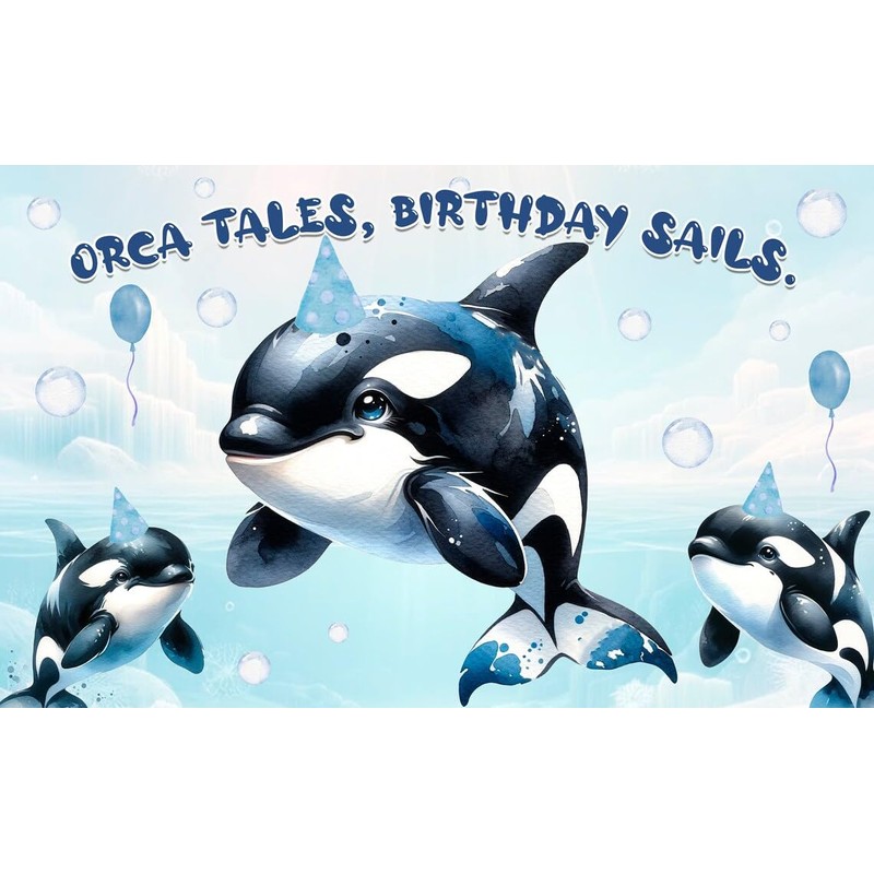 5x3 FT 'Orca Tales, Birthday Sails' Whale-Themed Birthday Backdrop - Joyous Underwater Celebration Decor