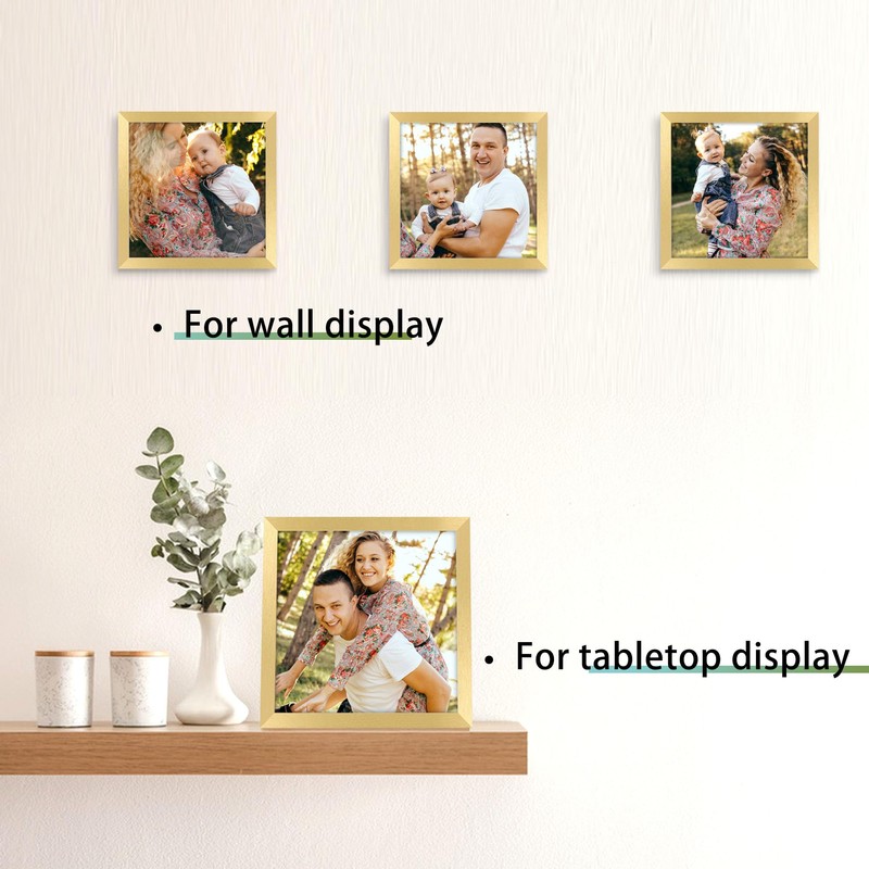 5x5 Picture Frame Gold, Rustic Square Frame Display 5x5 Photos, Poster Frame for Wall and Tabletop