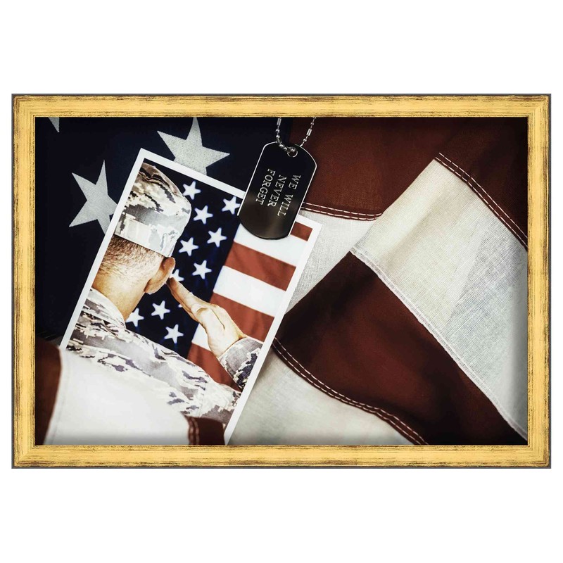5x7 Gold Shadowbox Frame - Shadow Box Frame Interior Size 5x7 in by 1.25 in Deep - Gold Frame is Made to Display Items Up to 1.25 in Deep! Includes Shatter Resistant Acrylic, Backing, Hardware