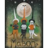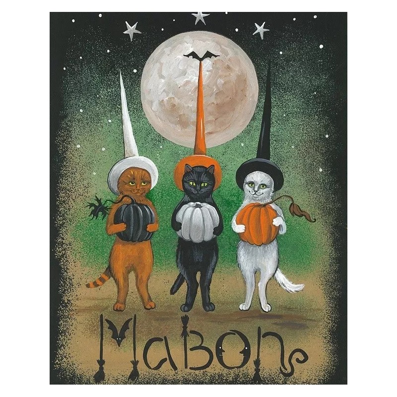 5x7 HALLOWEEN print of PAINTING RYTA WITCH BLACK CAT MOON AUTUMN EQUINOX FALL