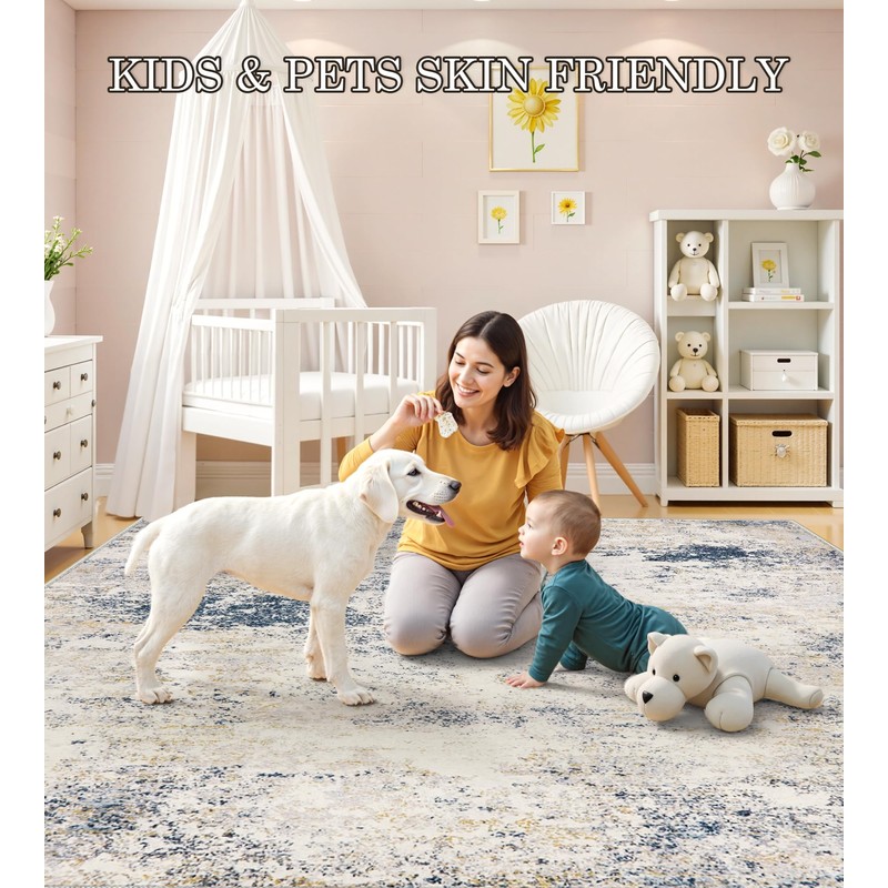 - Upgraded Non-Slip TPE Backing: Featuring advanced TPE rubber backing, this non-slip Bedroom Rug stays firmly in place on hardwood, tile, or laminate floors. Ideal for high-traffic areas like living rooms and dining spaces, ensuring safety for children and seniors