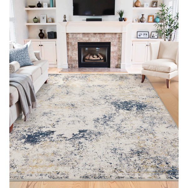 5x7 Washable Area Rugs - Modern Abstract Rugs for Living Room Non-Slip Low Pile Soft Machine Washable Carpet for Bedroom, Dining Room, Nursery, Home Office, Farmhouse (5'x7' Beige Blue)