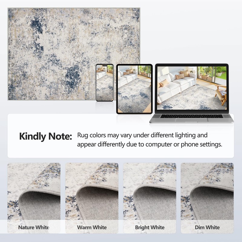 - Modern Abstract Aesthetic: Elevate your decor with abstract designs. The 5x7 Area Rugs blends contemporary artistry with farmhouse charm, complementing modern spaces and perfect for anchoring your space, bedrooms with gallery-worthy flair underfoot