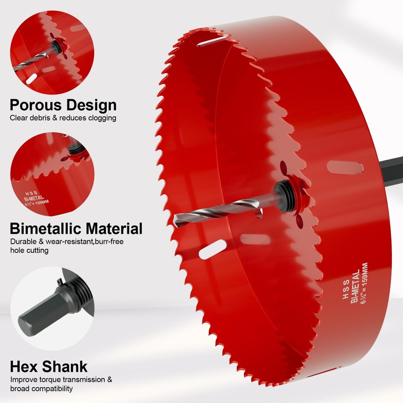 - Wide Range of Applications: This tool excels in drilling various materials, such as wood, plywood, plastic, gypsum board, and thin metal sheets; It is perfect for installing recessed lights, air vents, or pipe fittings with a precise 159 mm diameter; This versatility makes it ideal for cutting and drilling tasks across multiple materials