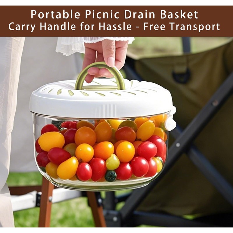 - Tidily Arranged:Snap-on lid prevents spills;foldable handle saves space.Built-in drain tray keeps produce dry in fruit drain basket or multi drain basket.Two sizes for small/large easy to stack and store.Perfect as fruit cleaning bowl or fridge organizer with draining basket function.