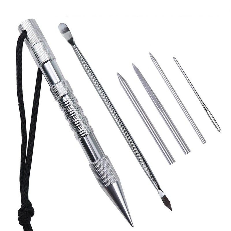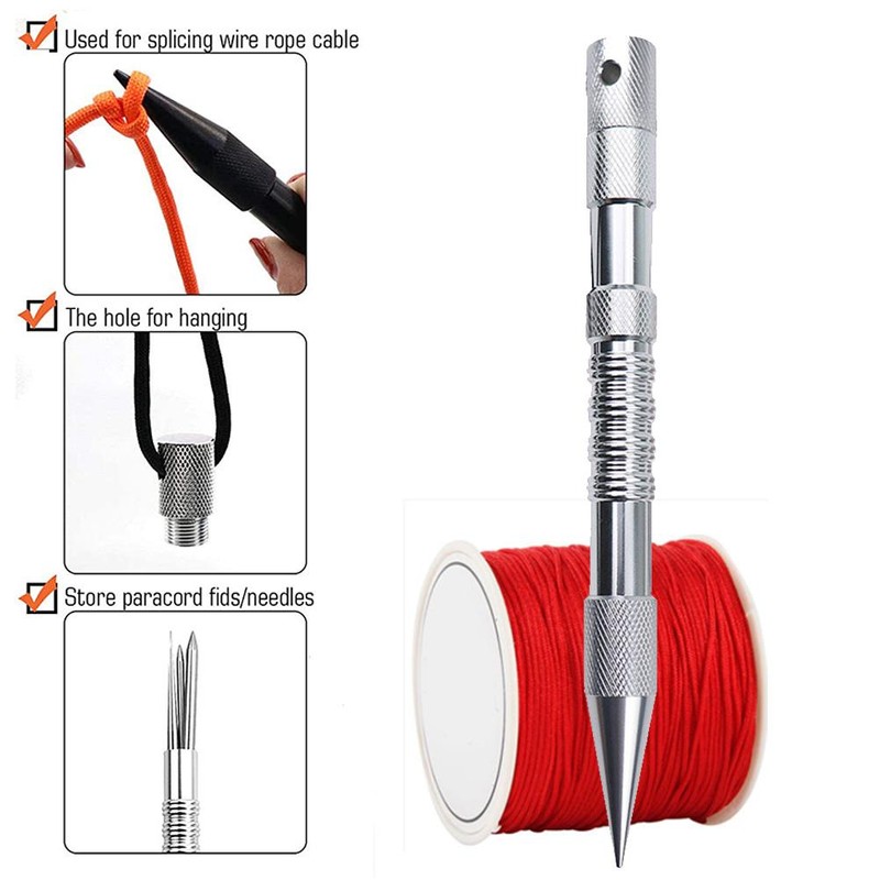 1、1.【DURABEL MATERIAL】-Aluminum alloy / Tightening Tool Spike with durable high luster clear anodized finish! The fids, needles and smothing tool are made of high quality stainless steel. 2、2.【MULTIFUNCTIONAL】-Packaging Includes: 1PC 6.7" Spike, 5PCS different diameter paracord FID (their inner diameters are 2mm, 3mm, outer diameter are 3mm, 5mm, 6mm), 2PCS bend needle(their inner diameters are 2mm, 3mm, outer diameter are 3mm, 5mm), 1PC 2.7" large eye blunt needle, 1PC 5.5" tweezer, 1PC 6.4" paracord smoothing tool and 1PC U sewing scissor. 3、3.【VERSATILE】-Perfect for your paracord projects. Needles of different sizes, lengths and shapes can be adapted to most of your laces, strings or other materials and other requirements. 4、4.【PORTABLE】-All three needles are internally threaded so the paracord or leather screws into them for a locking fit. They also fit perfectly inside the Tightening Tool for easy carrying! 5、5.【NEW GENERATION】-A totally creative new generation of knotters tool, suitable for your paracord project. Needles of different sizes, lengths and shapes can fit most of your shoelaces, string or other materials and other requirements.