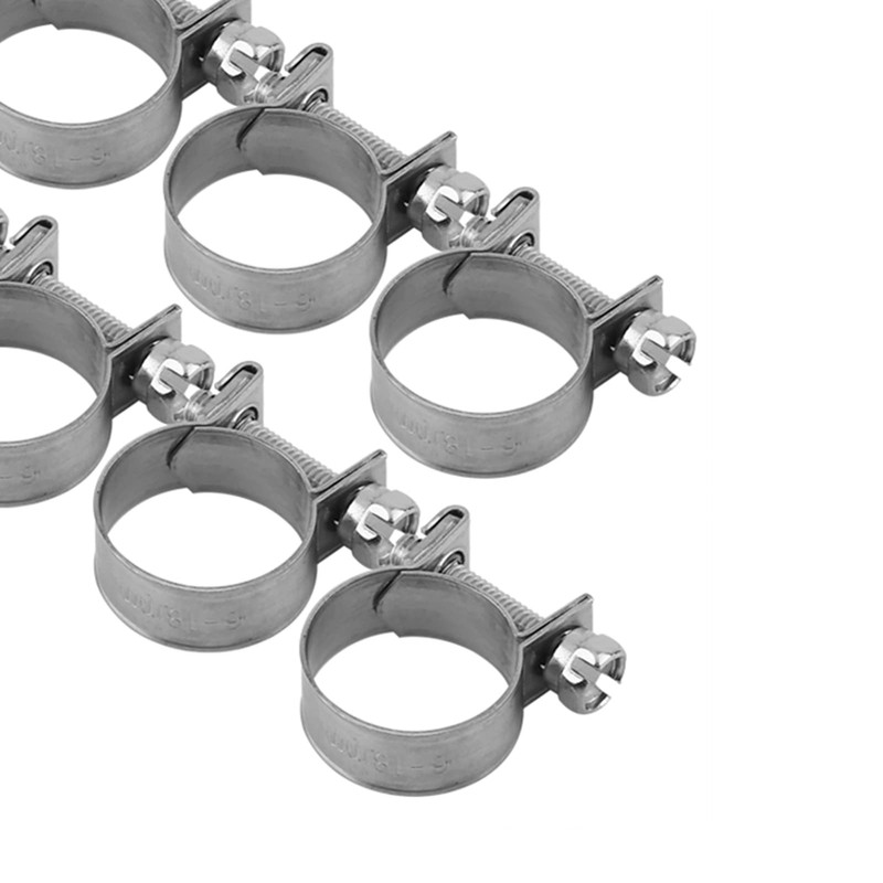 - Size: 6-20mm. Quantity:10. There are 8 kinds of hose clamps in different adjustable diameters that you can choose.