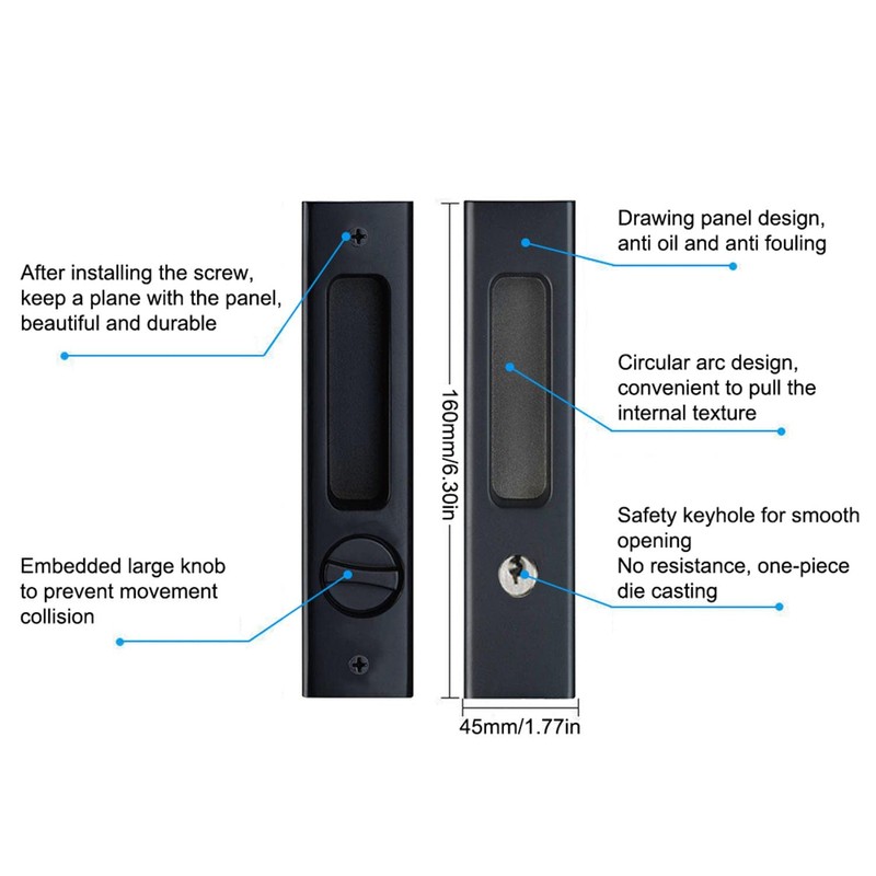 - 【CHOOS HIGH QUALITY MATERIALS】Sliding Pocket Door Lock is made of high-quality copper material, and the lock body of the pocket door lock is made of zinc alloy. The surface electroplating is smooth and feels excellent, without roughness. The design of anti-corrosion coating makes the door lock more wear-resistant, dirt-resistant and anti-corrosion. Dust, oil resistant and durable.