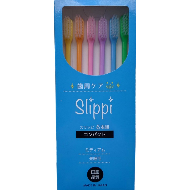 歯ブラシ コンパクト やややわらかめ 日本製 小さめヘッド 歯周ケア 奥まで届く 奥歯 先細 6本(青6本組)