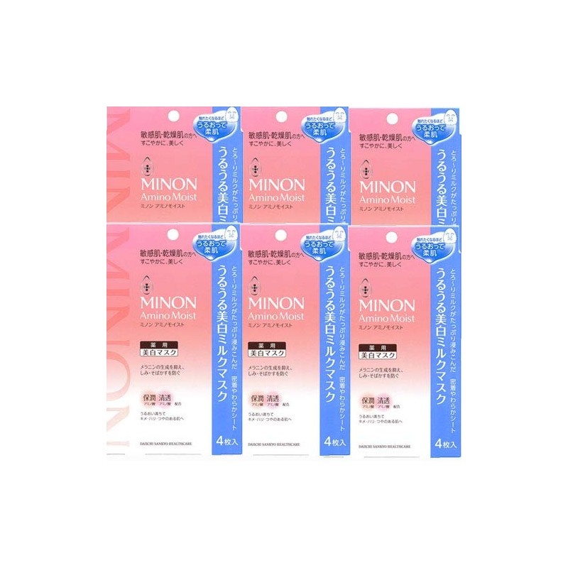 [6 Boxes] Minon Amino Moist Moisturizing Whitening Milk Mask, 6.6 fl oz (20 ml) x 4 x 4 x 6 Boxes (4987107623423-6)