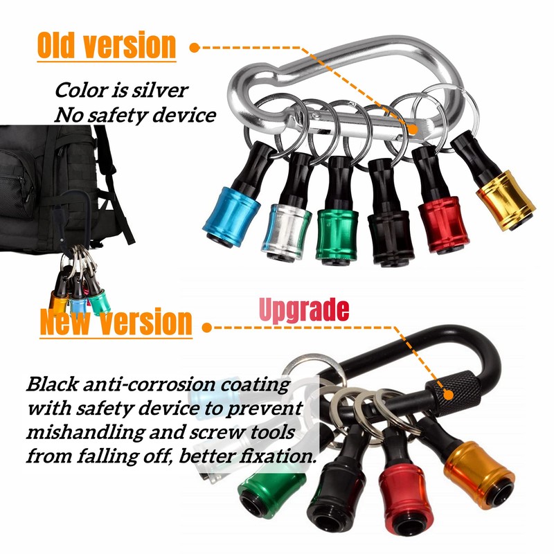 6 Color Drill Extension Bit Holder, 1/4inch Hex Shank Aluminum Alloy Screwdriver Bits Holder Extension Bar Drill Screw Adapter Change Keychain Portable 2023 Upgraded