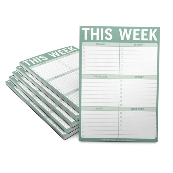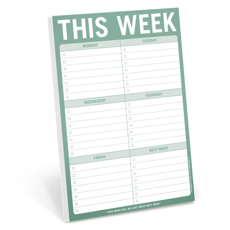 • Don't let yet another 168 hours of your life get away from you. The Knock Knock This Week Pad is a purpose-driven weekly calendar planner pad that lets you organize your daily affairs and monitor the big picture at the same time
