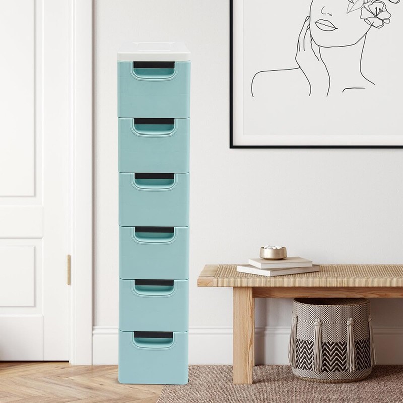 - 【Smart Design】: The slim rolling cart features smooth edges to protect your hands, easy-grip handles for effortless drawer access, and a top surface for placing plants, photo frames, or small essentials. With its modern appearance, this 6 drawers plastic cabinet blends seamlessly into any room style.