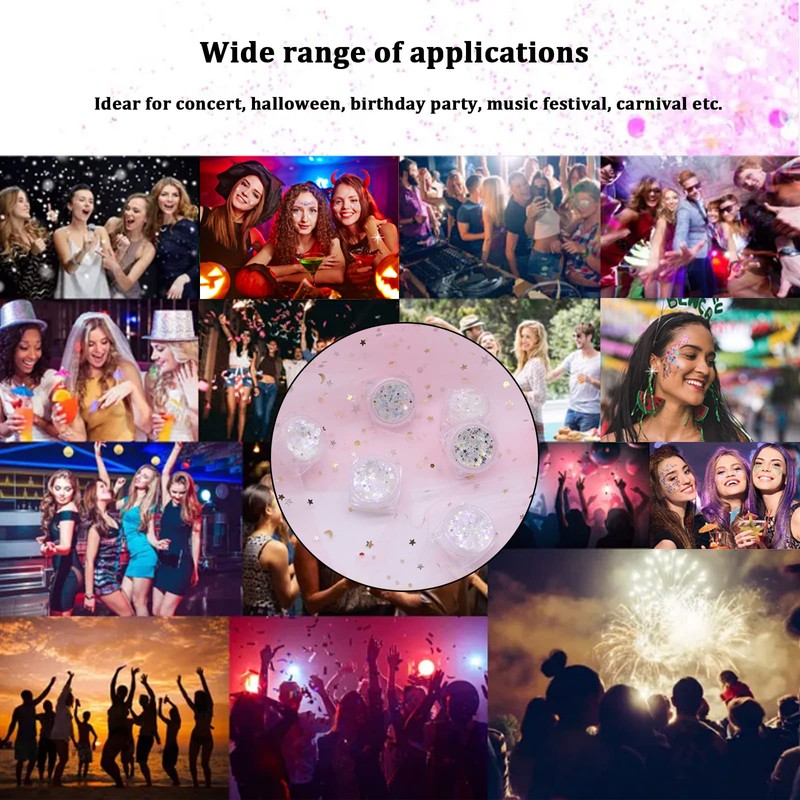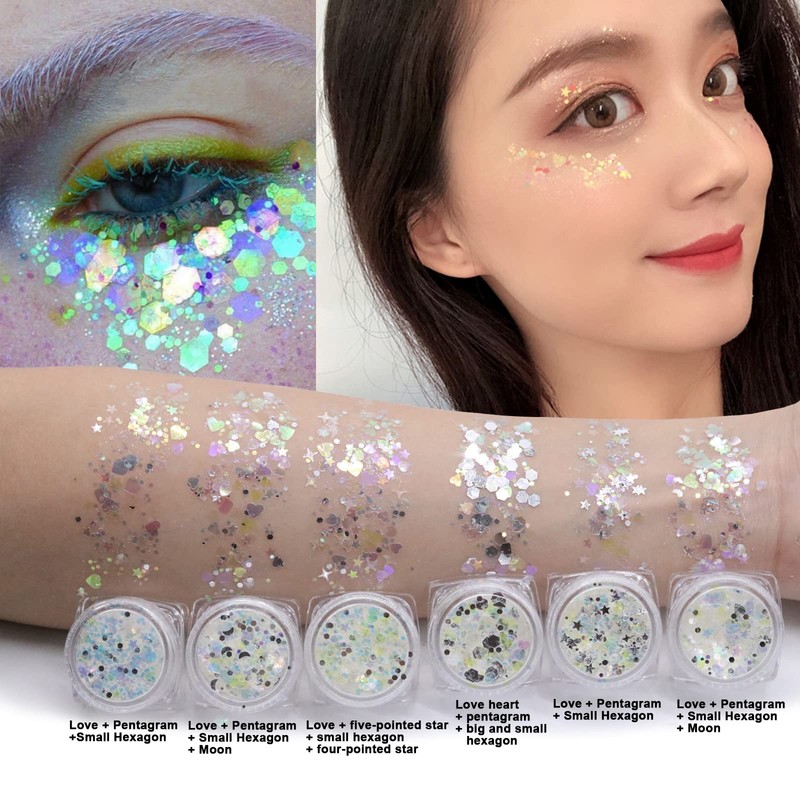 6 Farben Glitzer Make Up füR Gesicht KöRper und Haare KöRper Glitzer Sequin füR Musik Festival Masquerade Party Clubs