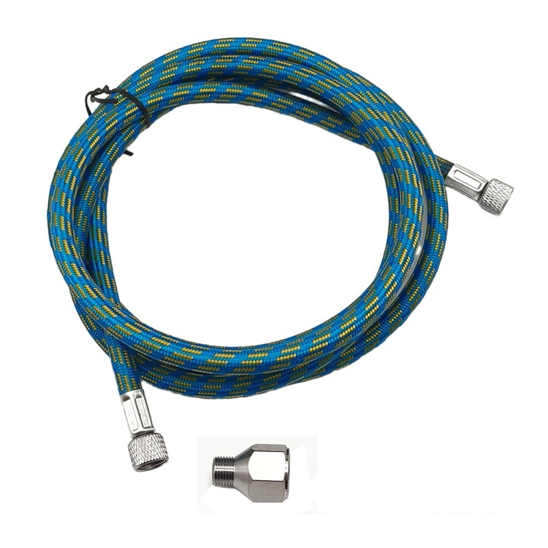 The 6 Foot Airbrush Hose (1.8m) is designed to offer a reliable connection between your airbrush spray gun and compressor, featuring standard 1/8" BSP male and female fittings on both ends. With its nylon braided exterior and rubber interior, the air compressor airbrush hose offers enhanced flexibility and durability, making it perfect for professional use.