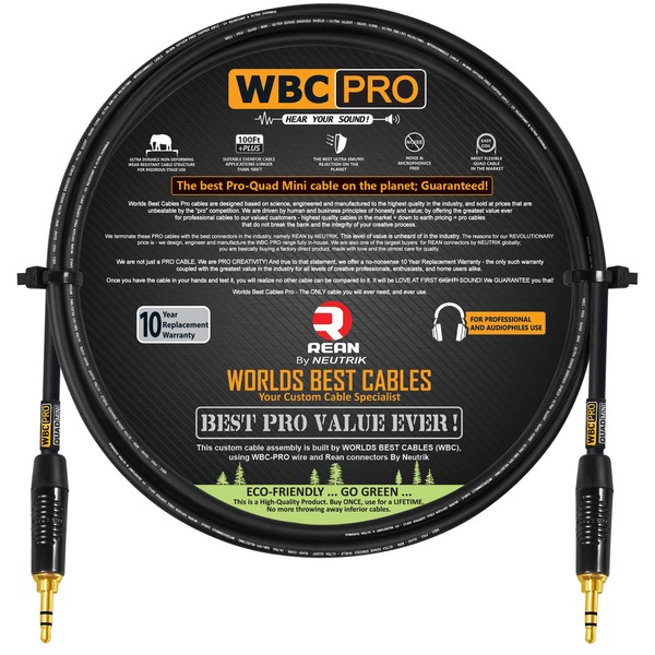 6 Foot - WBC-PRO-Quad-MINI Ultra-Silent Ultra-Flexible Balanced Mini-Star-Quad Auxiliary Cable with Neutrik-Rean 3.5mm Gold Mini TRS Plugs