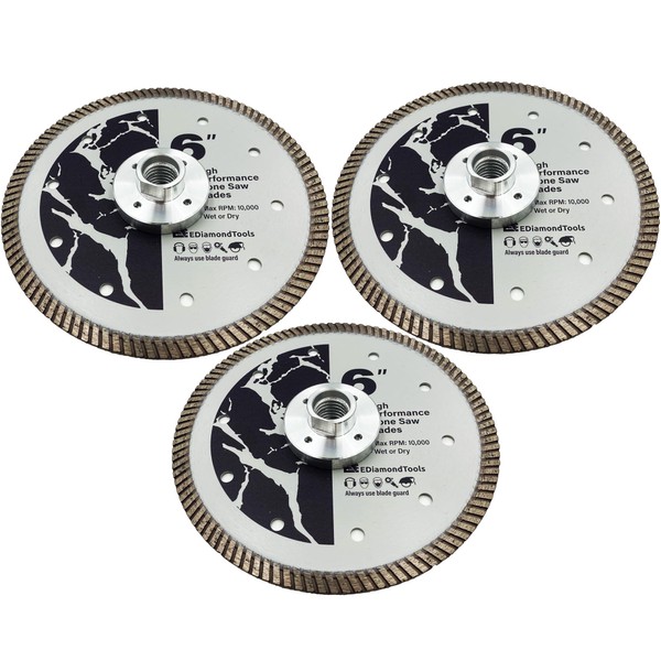 6" High Performance Diamond Saw Blades with Flush Cut for Granite, Quartz, and Other Engineered Stones, 5/8" Threaded Arbor, 3-Pack