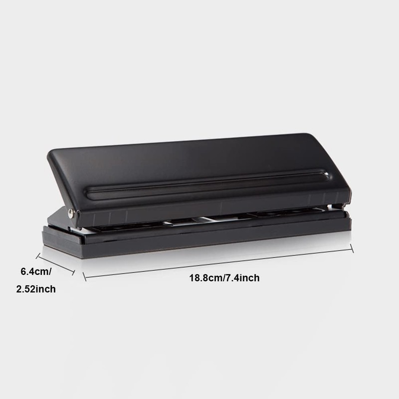 - Product Specification---Product Name: Puncher, Product Material: Metal + Plastic. Product Color: Black. Product Size: 18.8*6.4 cm/7.4*2.52 inch. Inlet Depth: 7 mm/0.28 inch. Punching Diameter: 5 mm/0.2 inch. Number of Punched Sheets: 8 Sheets. Package included: 1* Puncher.