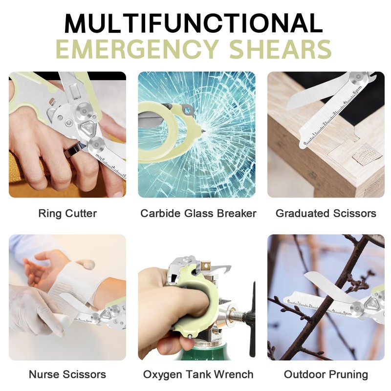 - 【ESSENTIAL TOOLS】To be prepared for some emergencies in life, you need such a multi-functional emergency response tool. It is ideal for emergencies or any situation requiring powerful cutting. Emergency shears are suitable for paramedics, nurses, ambulance personnel, firefighters, first responders, and survivalists