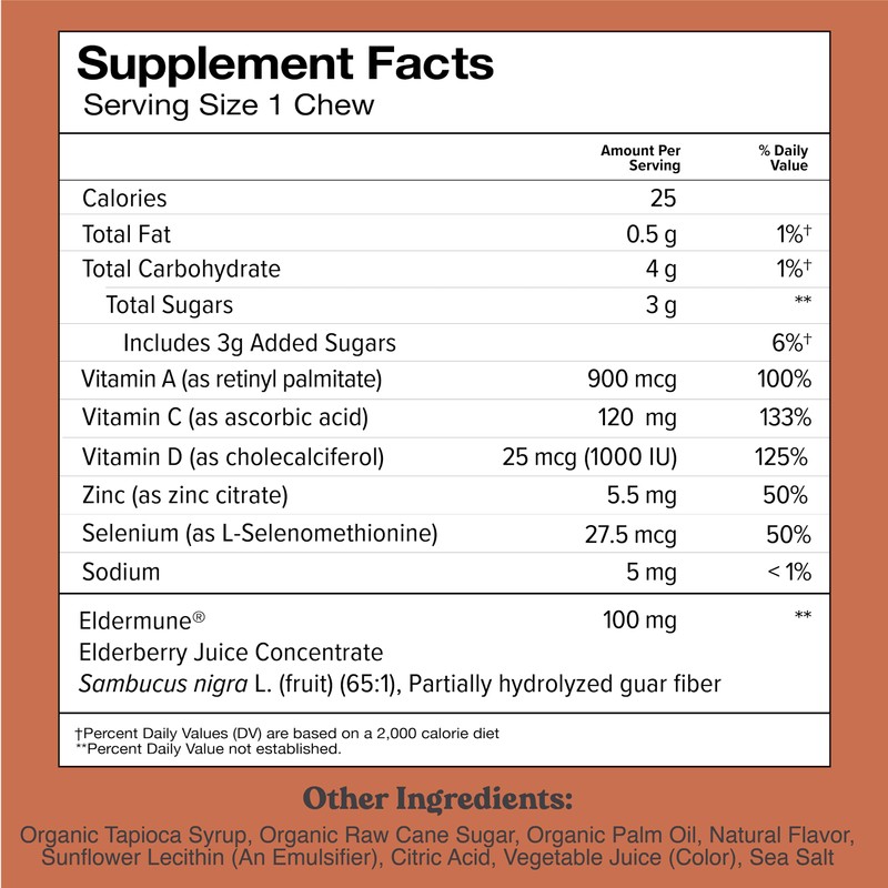 CHEWSY 6-in-1 Immune Support Supplement Fruity Chews with Elderberry, Vitamin C, A & D, Zinc & Selenium - 30-Day Supply, Individually Wrapped Immunity Vitamins Chews for Adults and Kids (1)